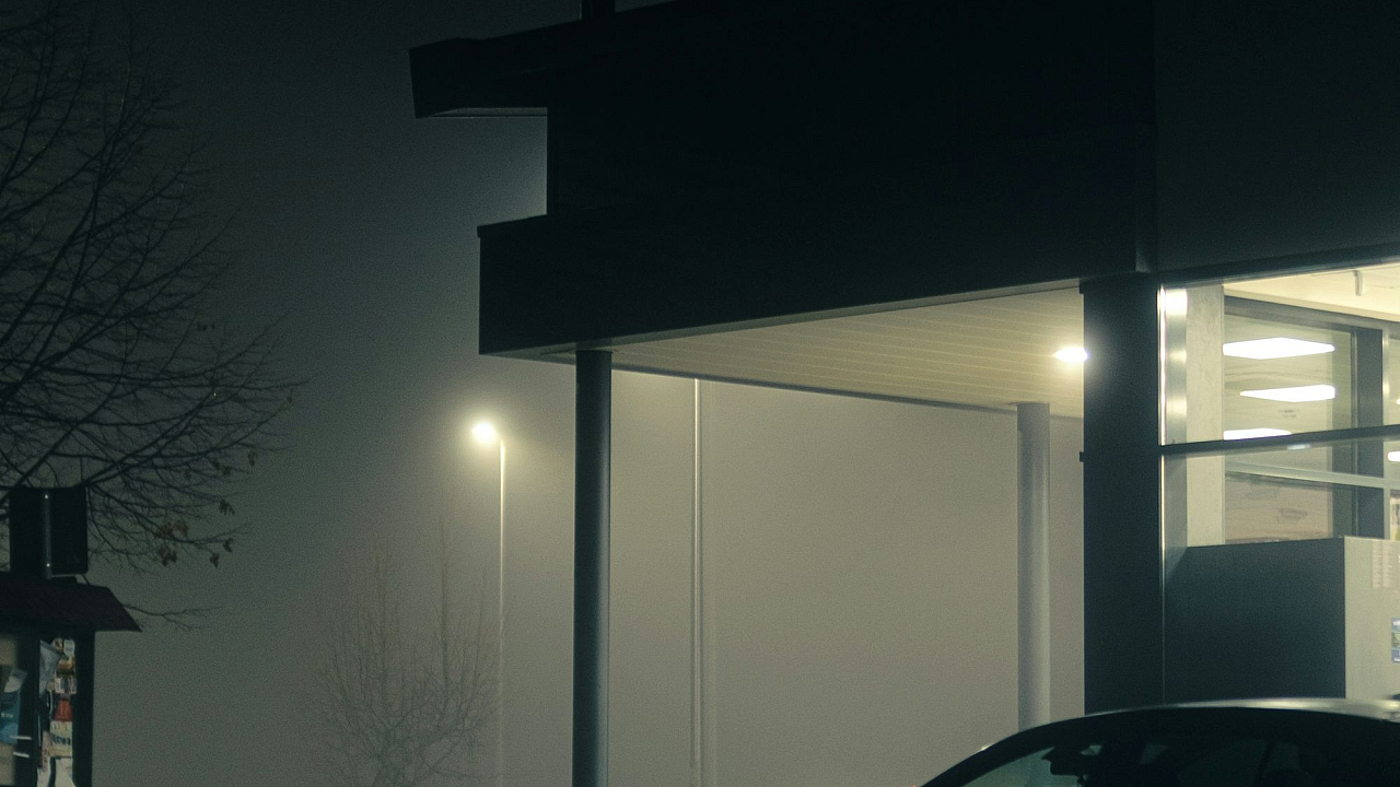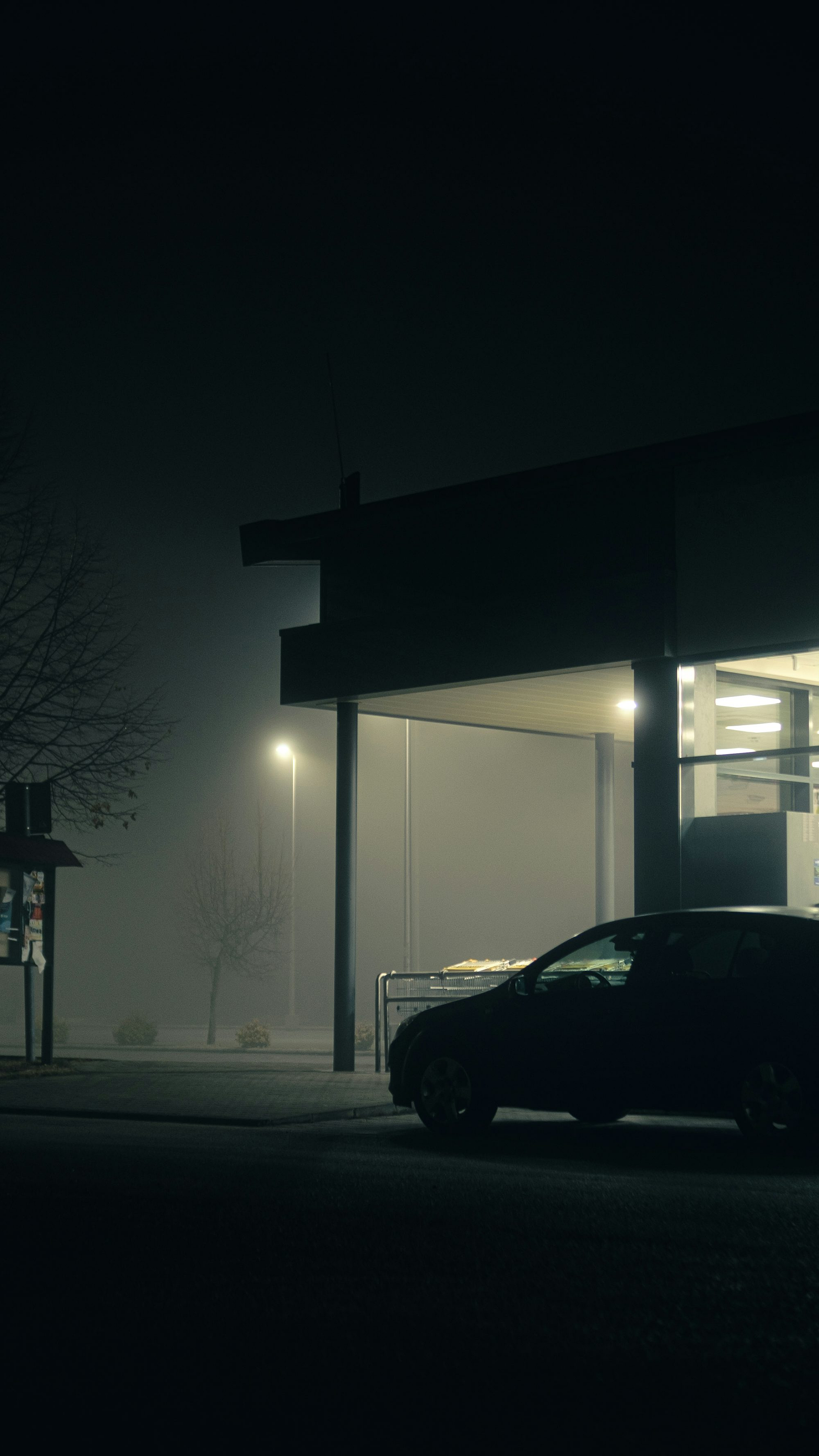 Wallpaper A Car Parked Outside a Building at Night