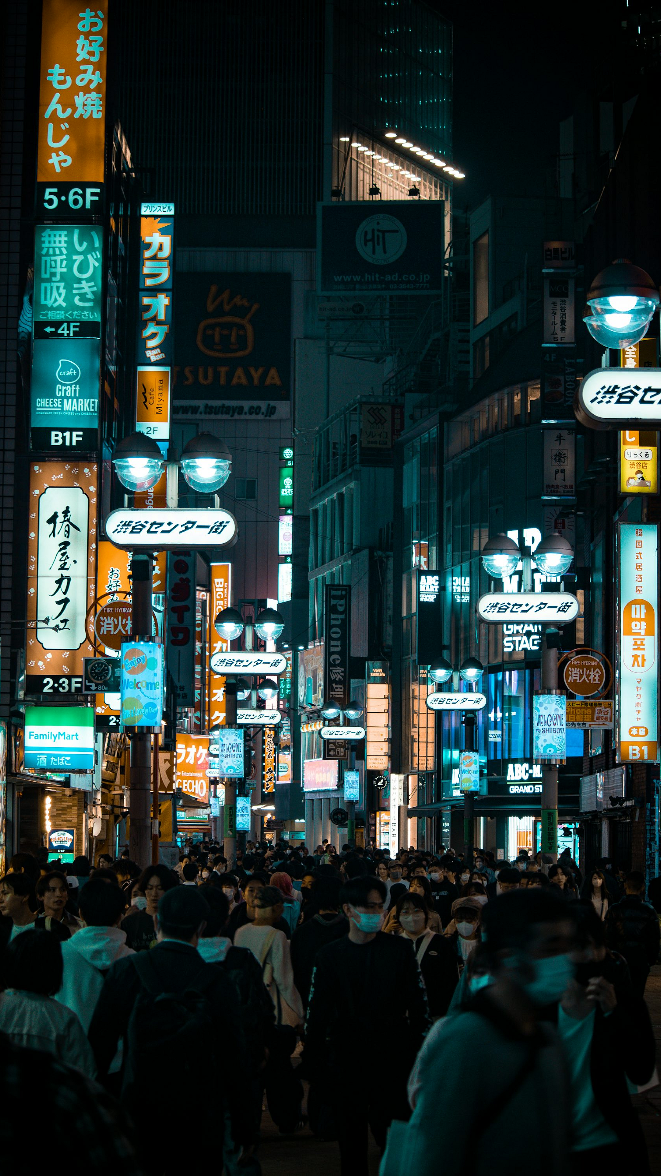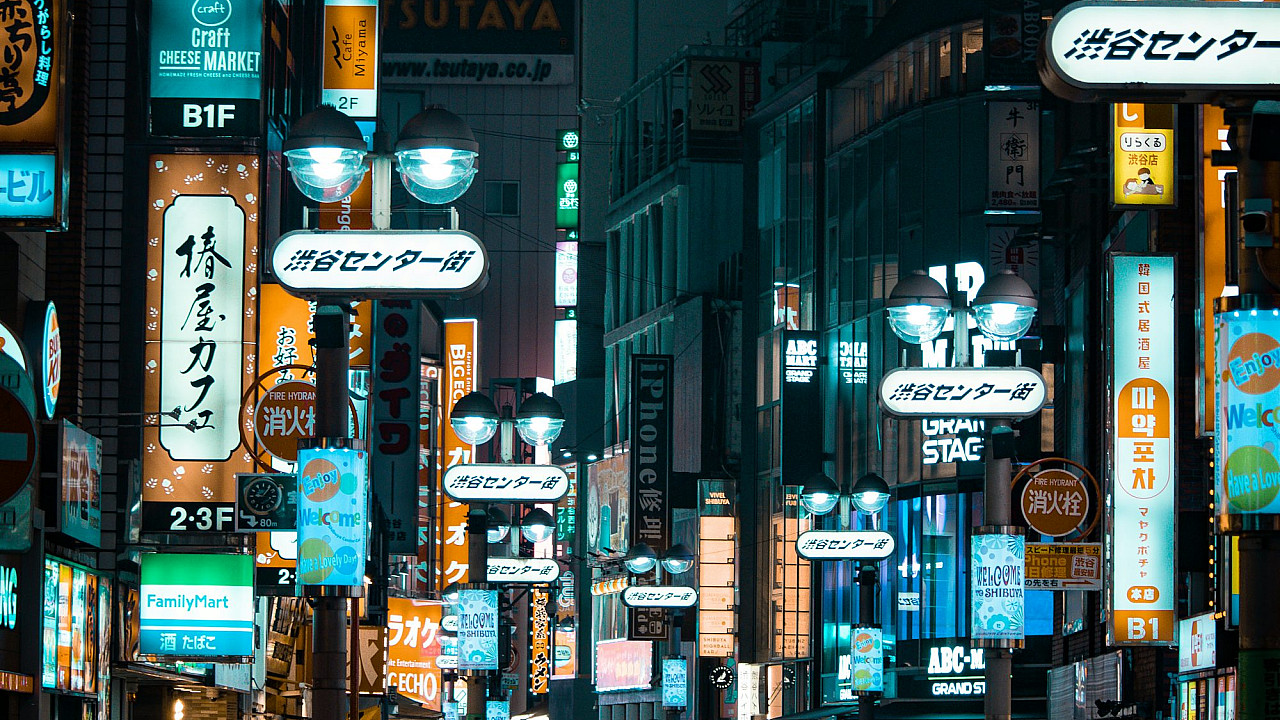 Wallpaper A City Street Filled with Lots of Neon Signs