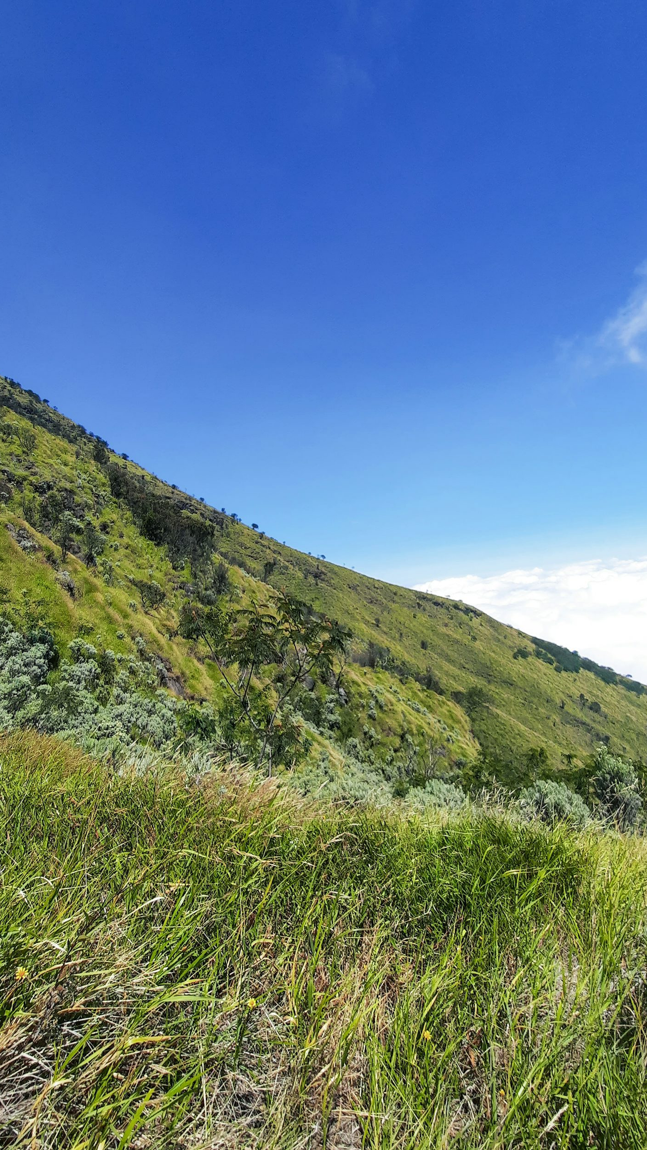 grassy hill, blue sky, landscape, nature, scenery, green grass, hills, meadow, field, outdoor, countryside, summer, horizon, clouds, pastoral