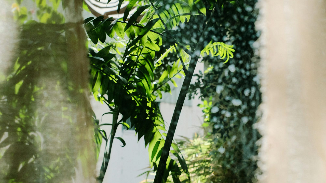 Wallpaper A Green Plant Seen Through a Window