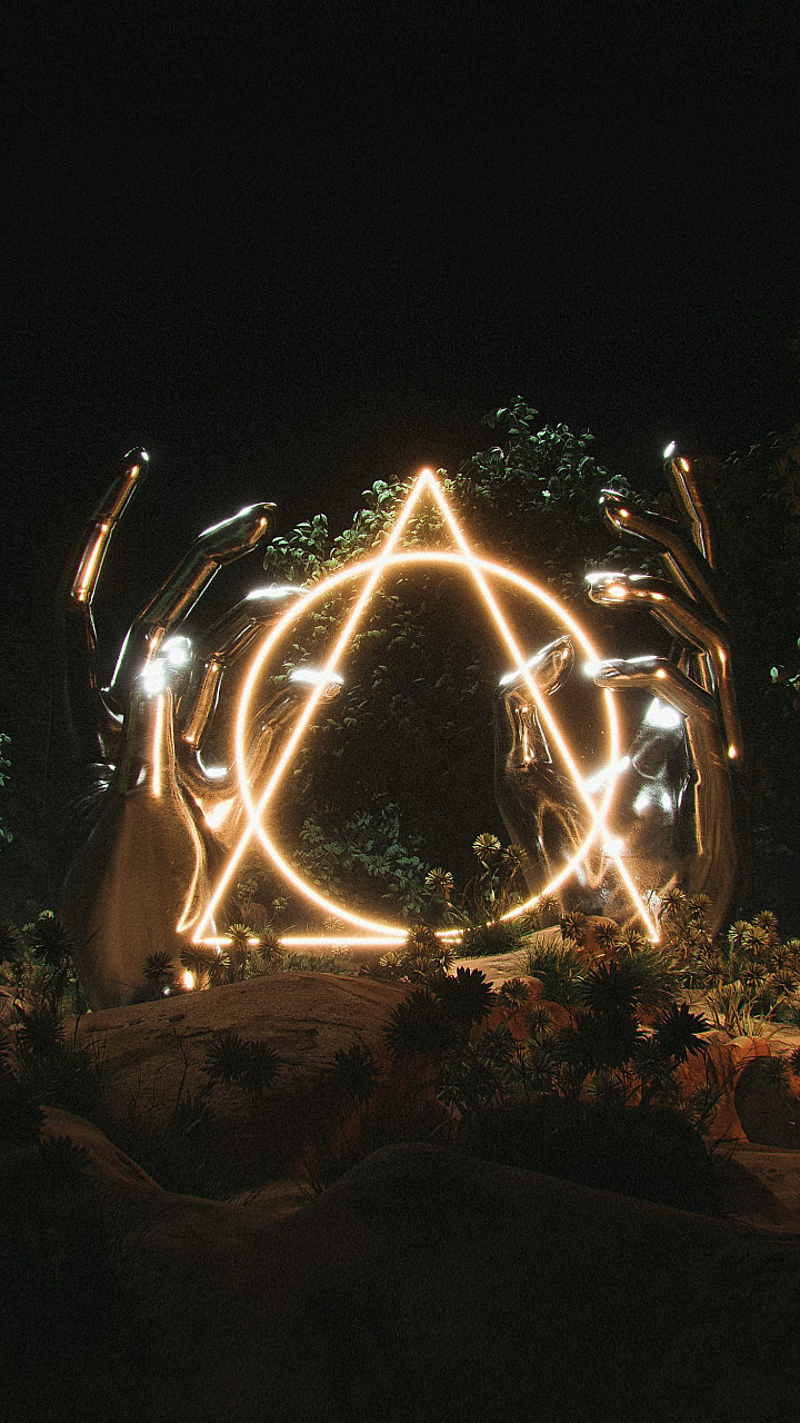 forest, woods, trees, light show, lights, illumination, night, darkness, magical, enchanted, nature, scenic, fantasy, ambient, atmosphere