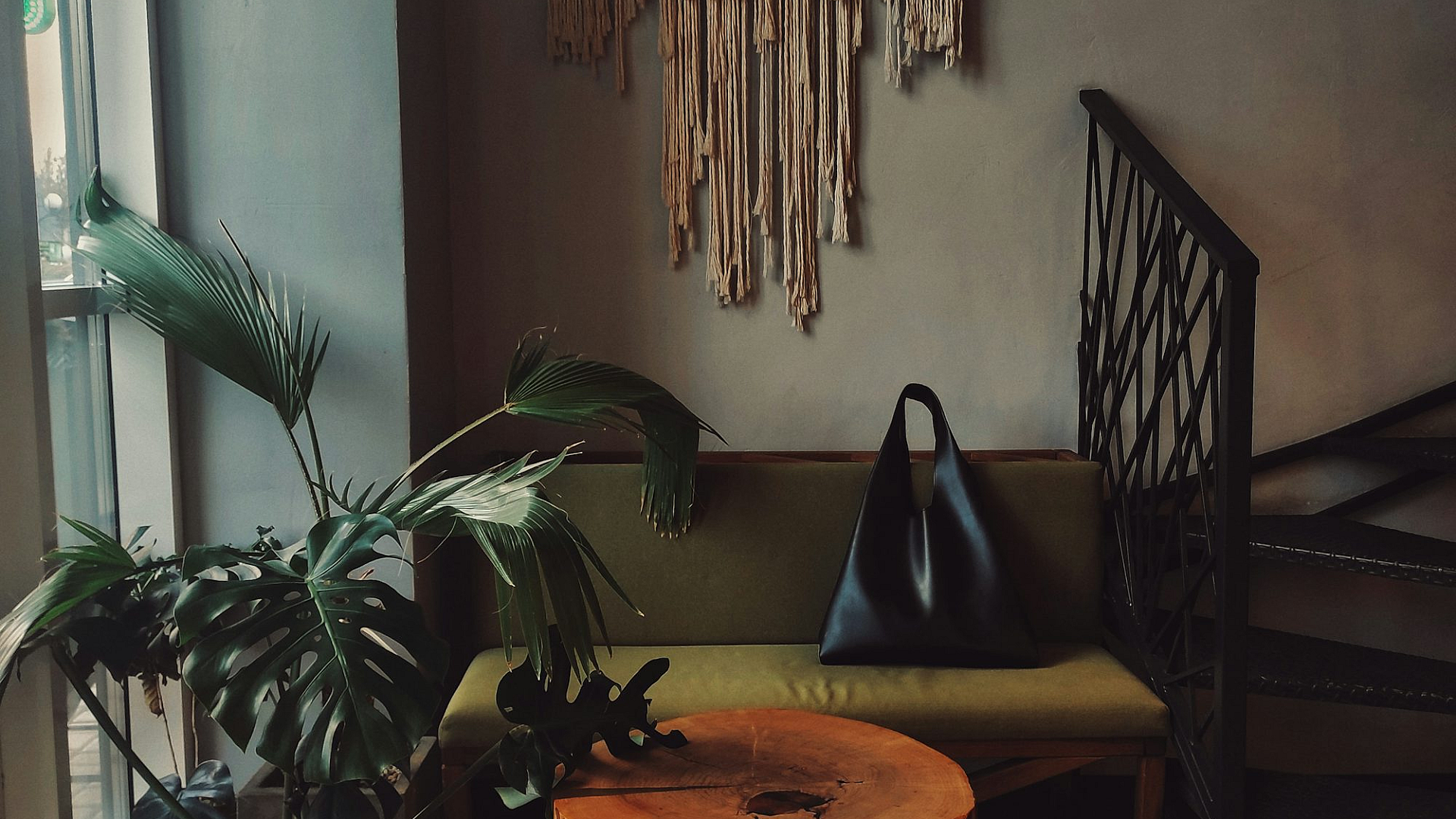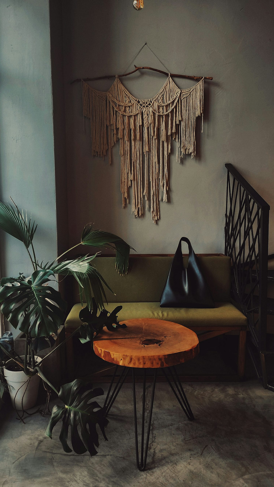 a living room with a couch and a table