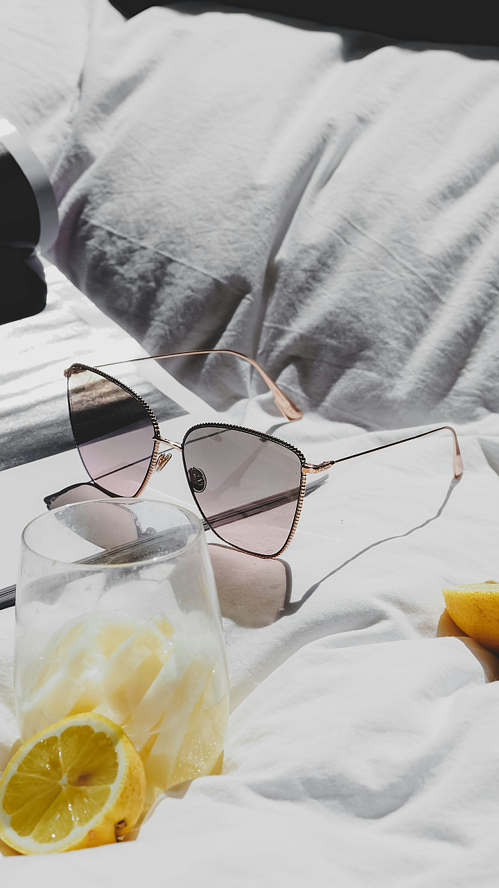 sunglasses, eyewear, shades, spectacles, bed, bedroom, resting, relaxation, summer, vacation, fashion, style, accessories, sun, sleep