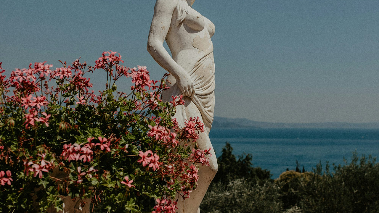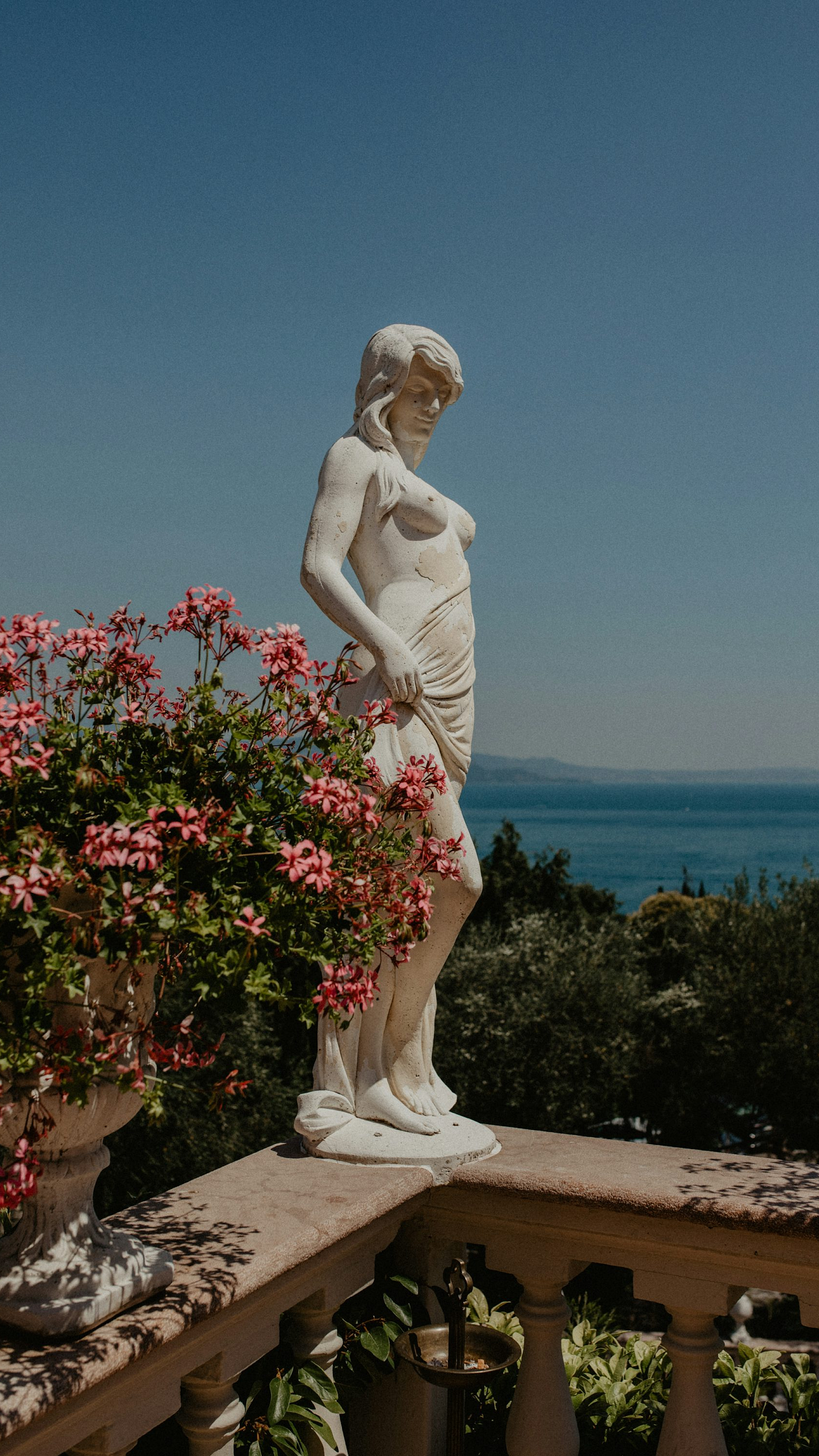 statue, sculpture, figure, ledge, cliff, water, ocean, sea, lake, river, overlooking, view, landscape, scenic, silhouette