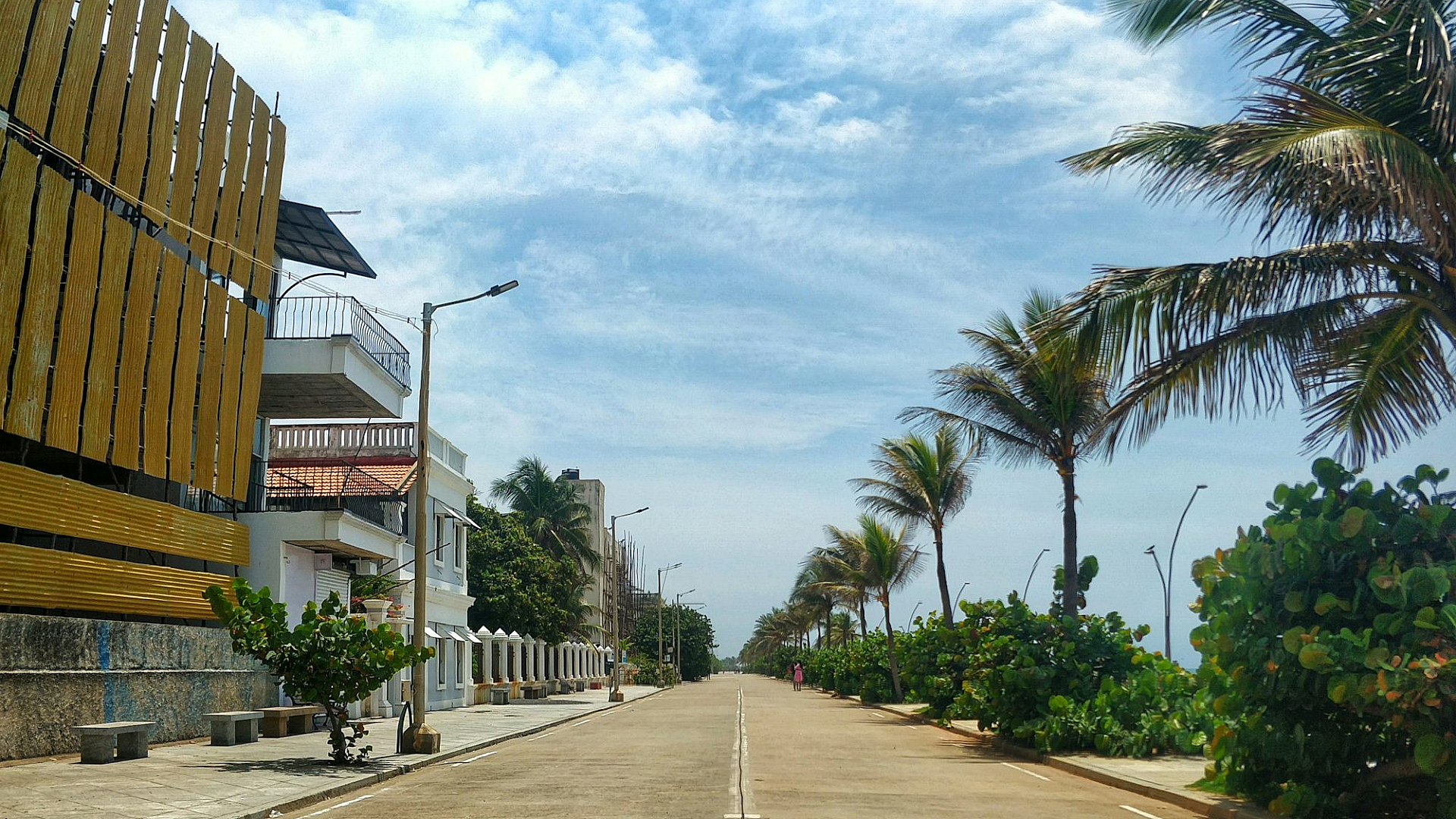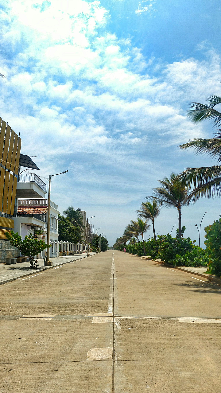 Keywords: palm trees, street, buildings, city, urban, tropical, sunny, landscape, architecture, scenery, vacation, travel, exotic, paradise, warm