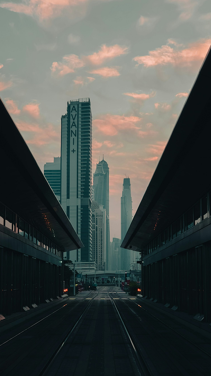 cityscape, city view, train station, railway station, urban landscape, metropolitan view, high-speed rail, train platform, city lights, buildings, skyscrapers, architecture, transportation, travel, perspective