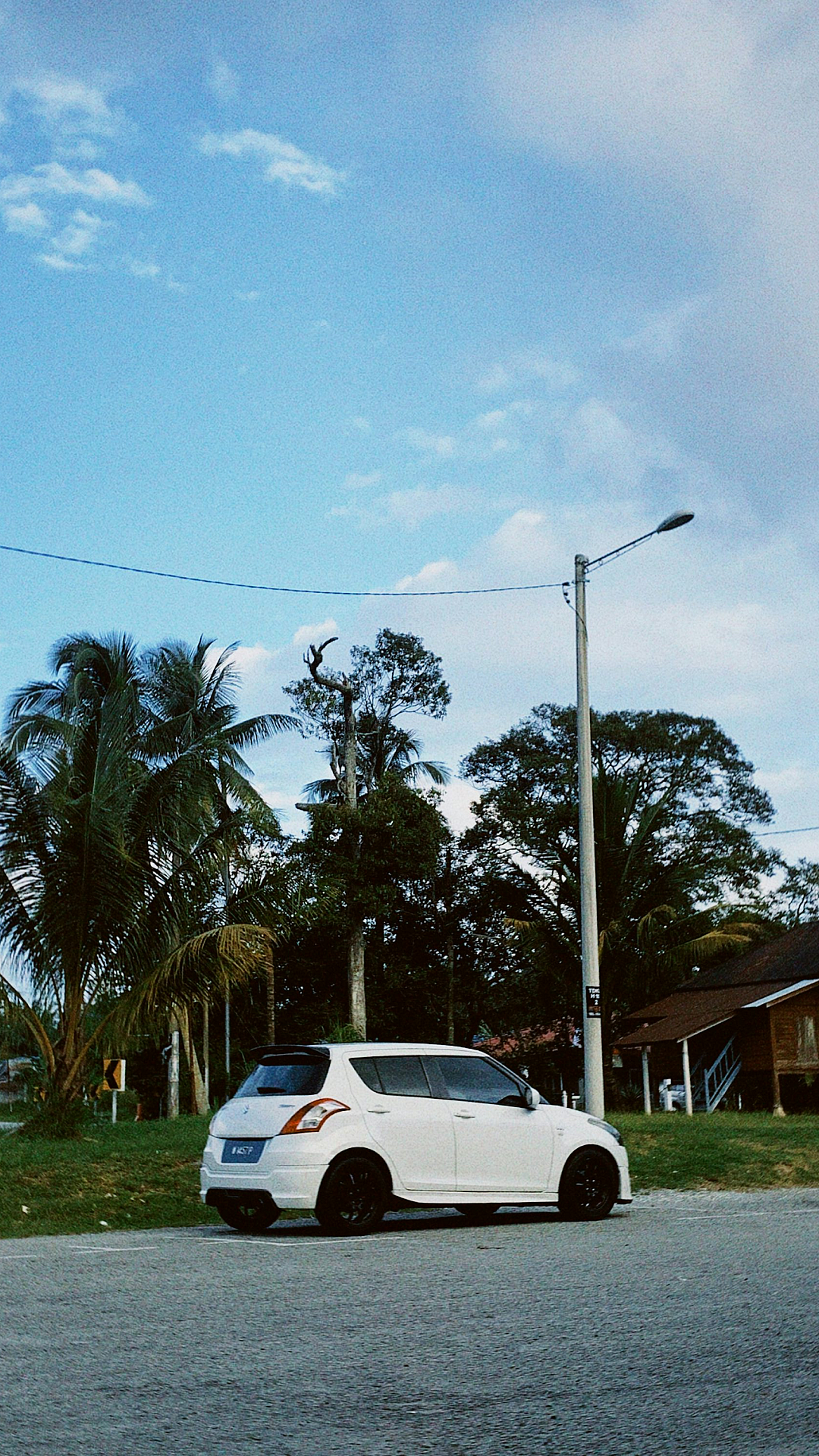 Wallpaper A White Car Parked on the Side of the Road