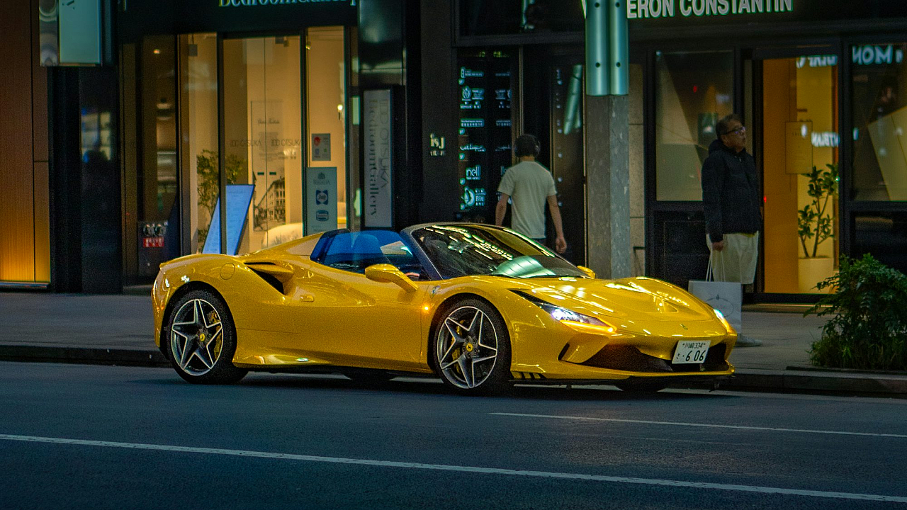 a yellow sports car parked on the side of the road