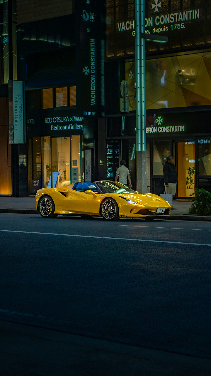 Wallpaper A Yellow Sports Car Parked on the Roadside