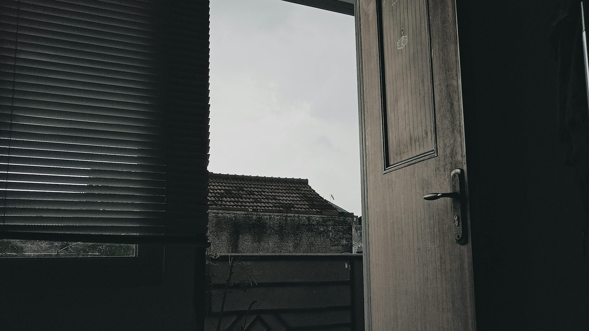 open door, dark room, mysterious, eerie, suspense, horror, gothic, darkness, light, shadow, doorway, entrance, passage, unknown, mystery