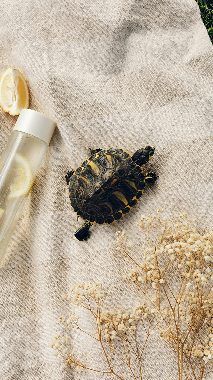 The rich colors and intricate details of the turtle figurine are beautifully captured, creating a visually striking image. The wallpaper is designed to bring a sense of calm and serenity to your home or office.