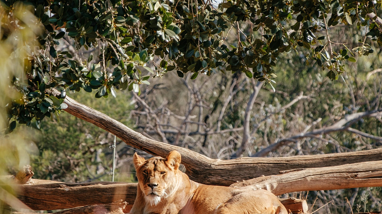 brown lioness, lioness, female lion, tree log, log, wood, wildlife, animal, nature, savanna, African wildlife, predator, big cat, resting lioness, wild cat