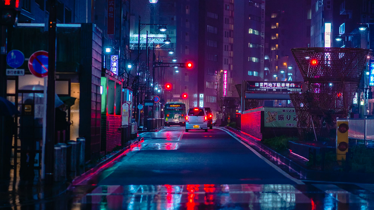 cars, road, high-rise buildings, night, cityscape, nighttime, urban, skyscrapers, street, traffic, vehicle, buildings, evening, downtown, metropolis
