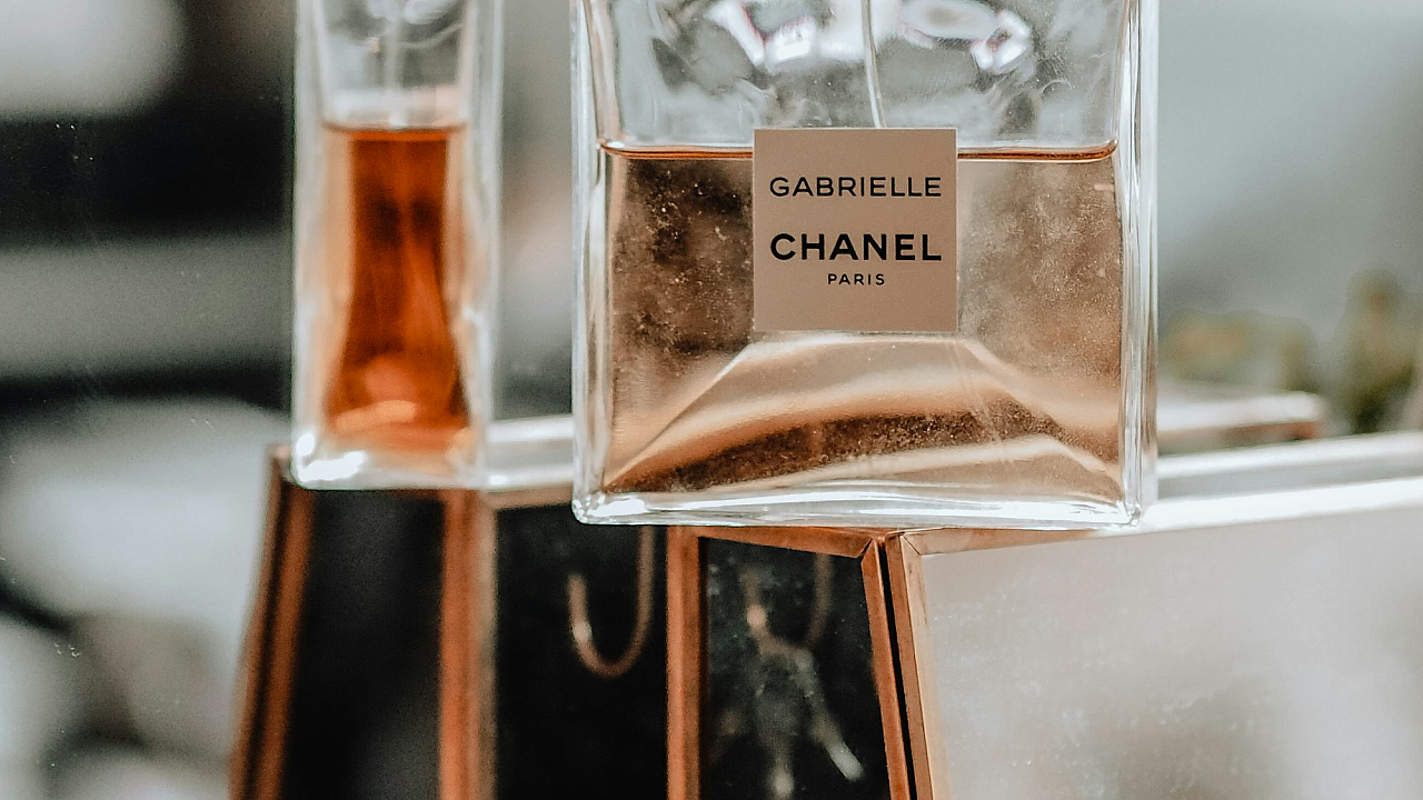 This wallpaper features a clear glass perfume bottle sitting on a white table. The image is minimalist and elegant, focusing on the clean lines and transparency of the glass bottle. The simplicity of the composition makes it a perfect choice for a desktop or phone background. The neutral colors—clear glass and white—ensure that the wallpaper complements a wide range of screen aesthetics.