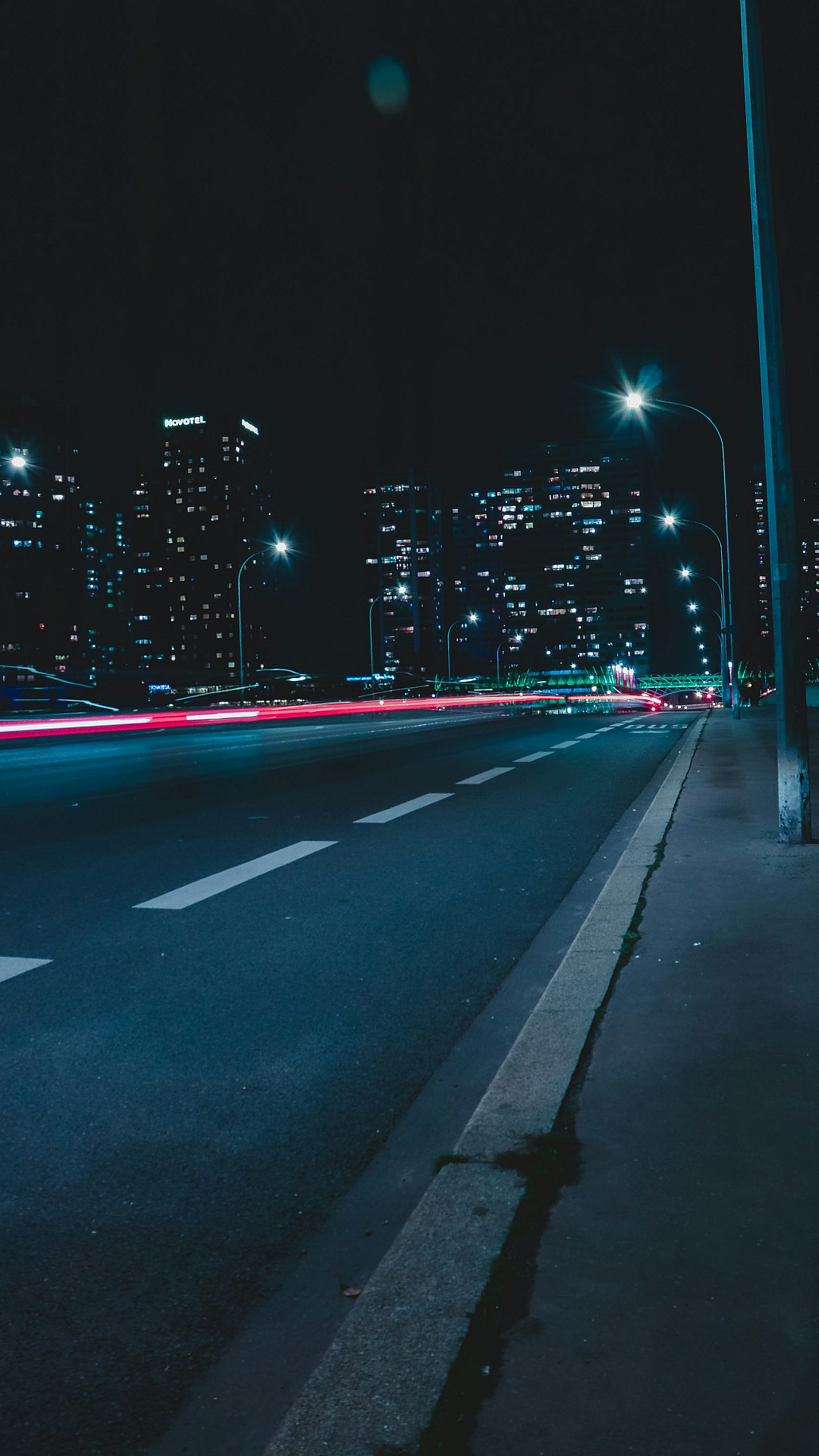 empty street, night, street lights, nighttime, dark, illuminated, city street, urban, deserted, lonely, background, wallpaper, night scene, street photography, ambient lighting