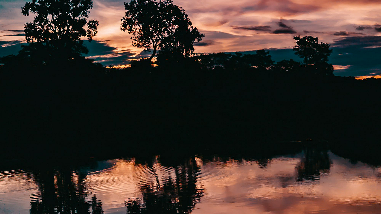 forest, sunset, water, lake, river, trees, woods, nature, landscape, scenery, golden hour, twilight, peaceful, serene, tranquil