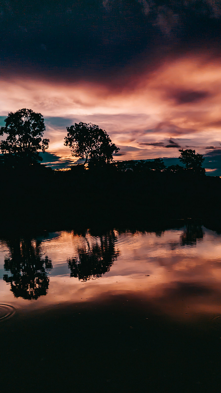 Wallpaper Forest Near Body of Water at Sunset