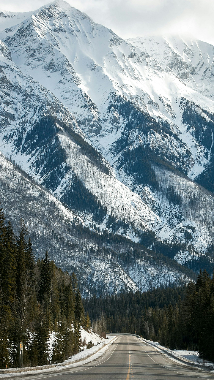The high-resolution image ensures sharp detail, allowing you to enjoy the subtle intricacies of the scene. The overall aesthetic is both modern and timeless, suitable for a variety of personal styles. Whether you prefer minimalist designs or more nature-inspired themes, this wallpaper is a great choice for bringing a touch of the outdoors to your digital world. The contrast between the dark asphalt and the light green of the trees adds visual interest and depth.
