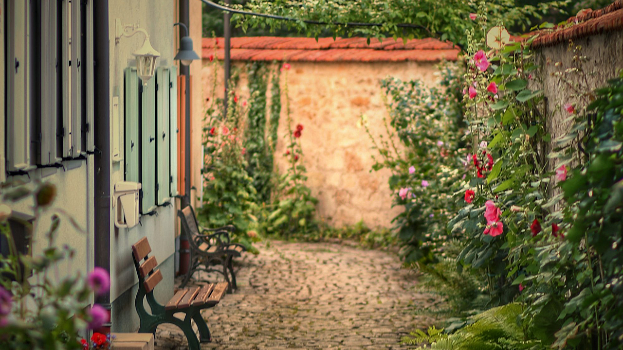The outdoor setting adds to the natural feel of the wallpaper. The garden or backyard setting subtly implied adds a layer of comfort and familiarity. It’s a perfect choice for anyone who appreciates the beauty of simple, natural scenes.