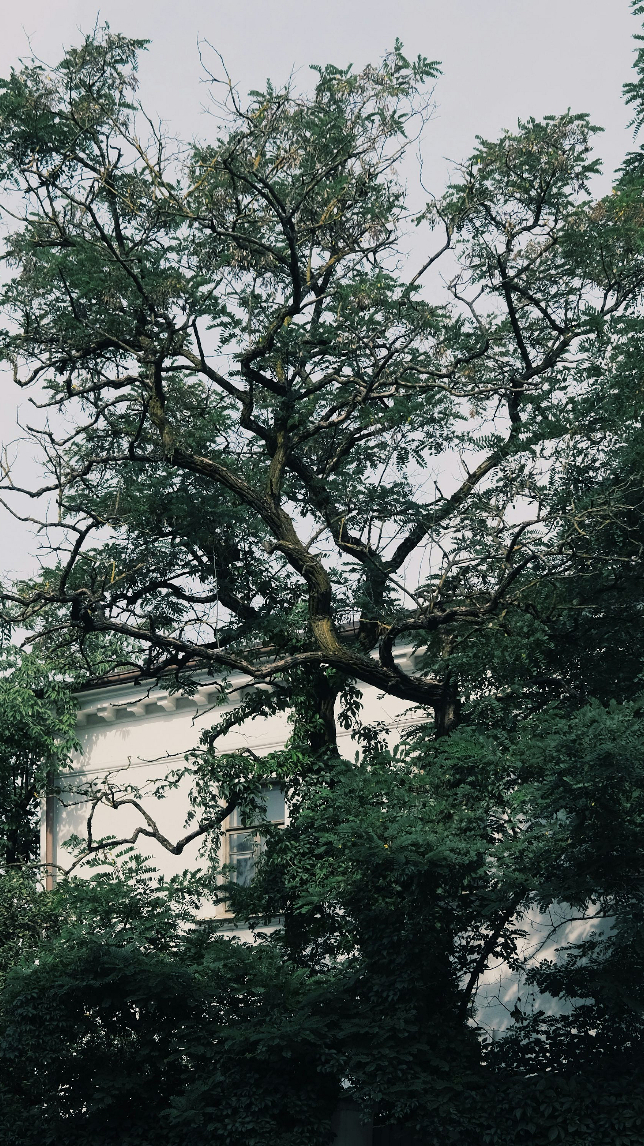 Keywords: green tree, white building, concrete building, nature, architecture, urban nature, green leaves, tree wallpaper, building wallpaper, nature wallpaper, architectural wallpaper, urban wallpaper, concrete structure, foliage, greenery