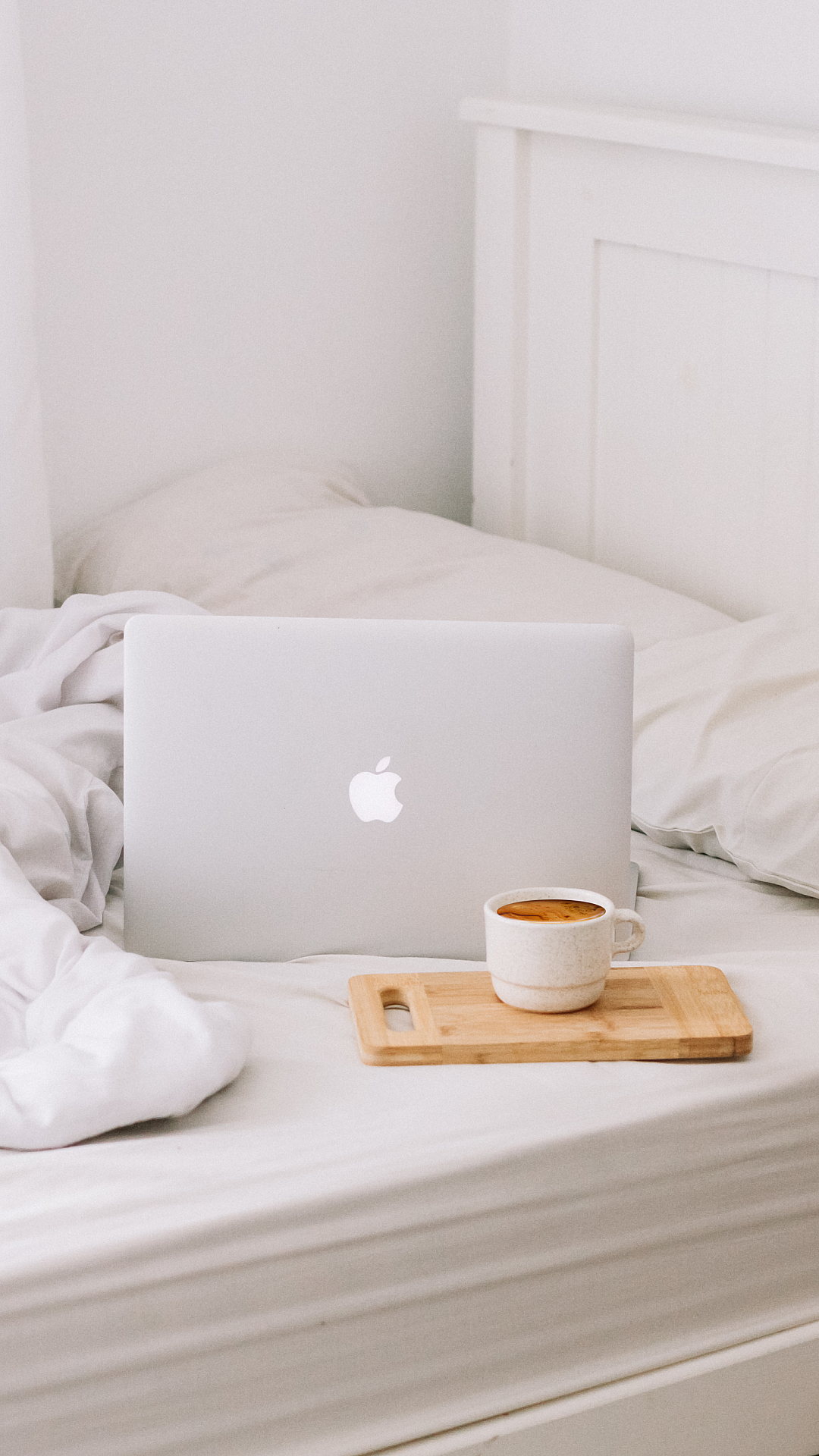 The minimalist aesthetic makes it versatile enough for various screen sizes and personal styles. The warm tones of the latte and the clean lines of the MacBook create a visually appealing contrast.
