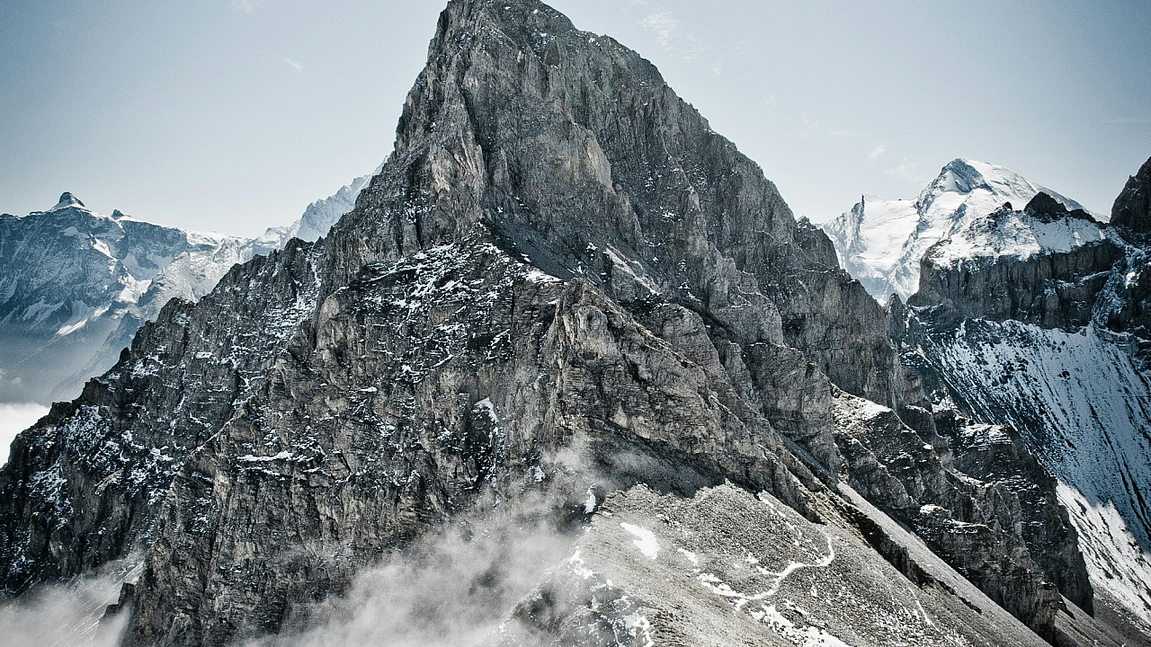 This stunning wallpaper features a breathtaking snow-covered mountain. The image showcases the majestic beauty of nature, with pristine white snow blanketing the rugged peaks. The serene landscape evokes a sense of tranquility and wonder.
