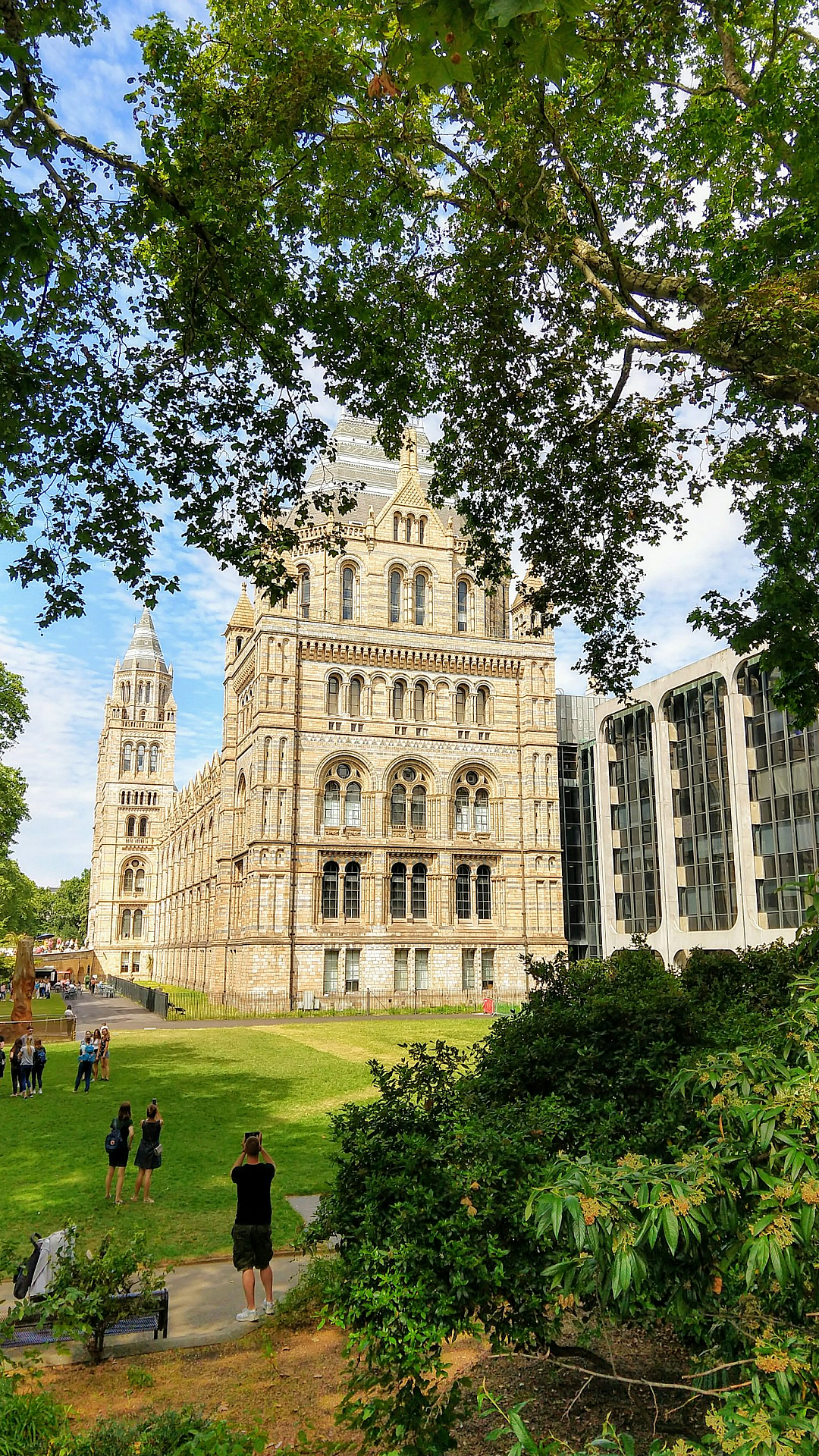 Keywords: people, walking, park, white building, concrete, daytime, outdoors, stroll, leisure, recreation, urban park, cityscape, architecture, pedestrians, sunlight