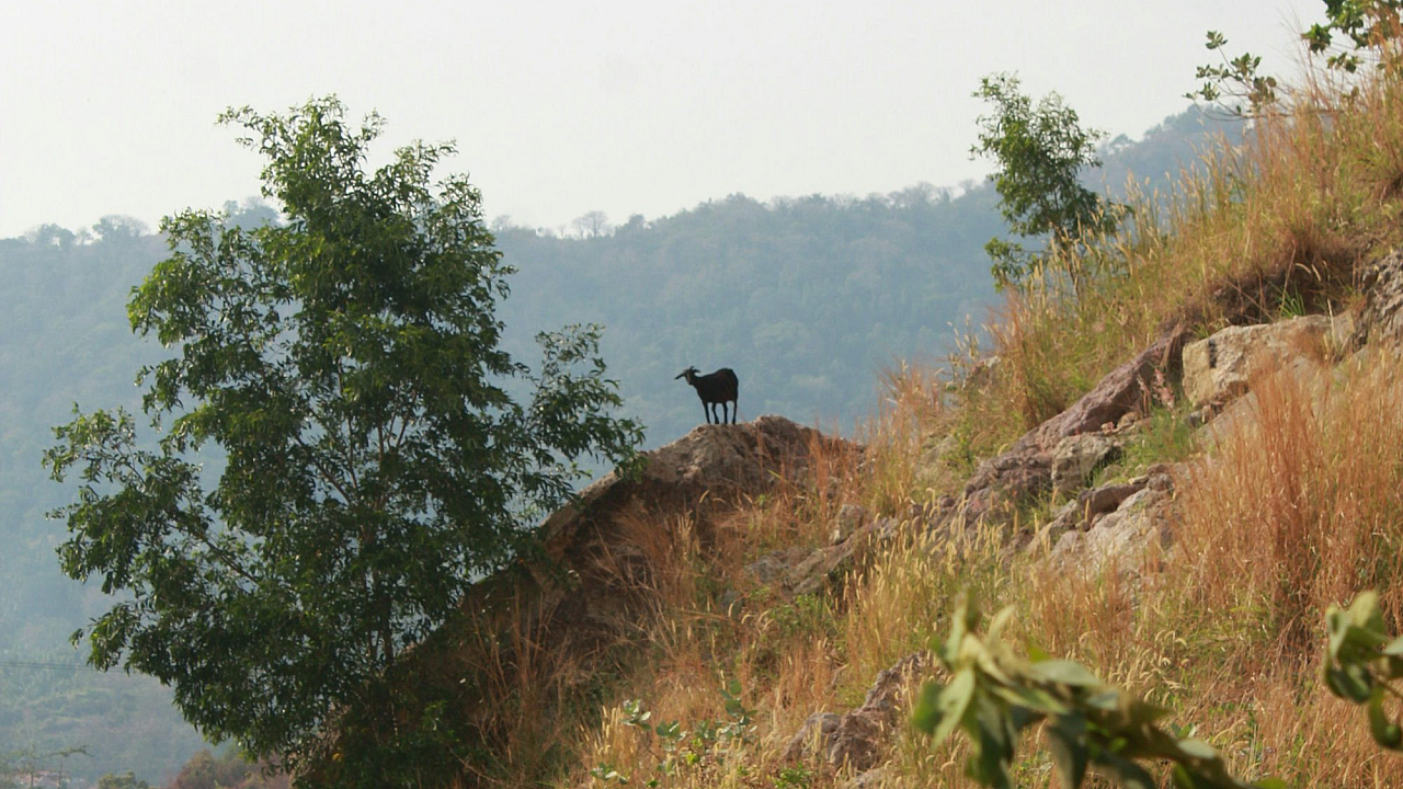 Keywords: person, sitting, rock, brown rock, green grass, water, body of water, lake, river, sea, ocean, daytime, sunlight, nature, landscape, scenery, outdoors, relaxation, tranquility, serenity, calm, peaceful, picturesque, view, scene, sitting on a rock, rock formation