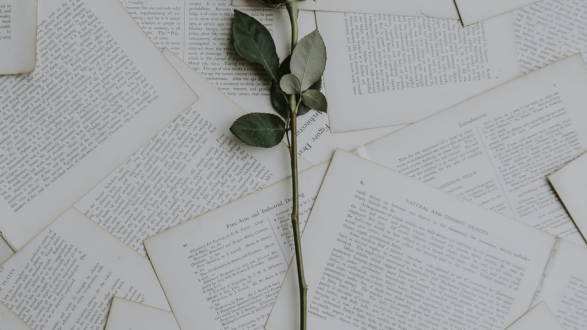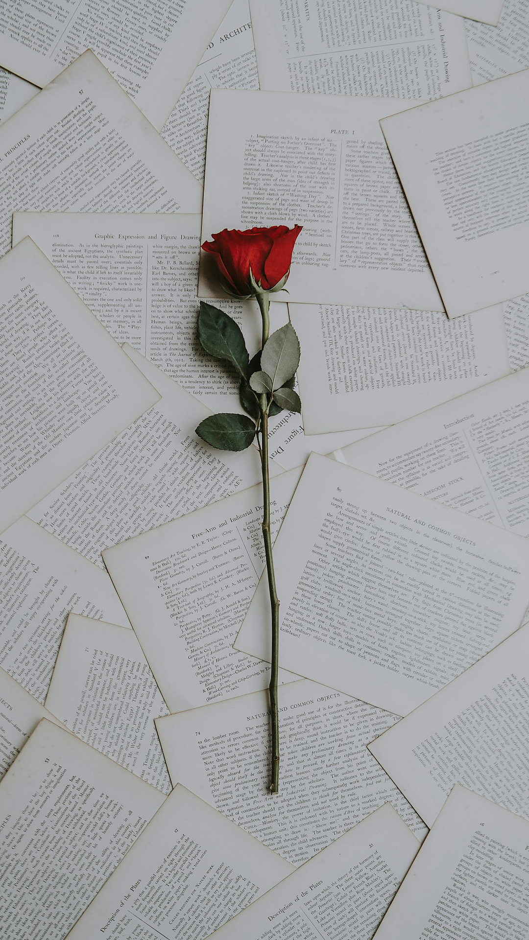 red rose, rose, book, books, sheets, paper, pages, vintage, romantic, floral, flower, wallpaper, background, desktop wallpaper, mobile wallpaper