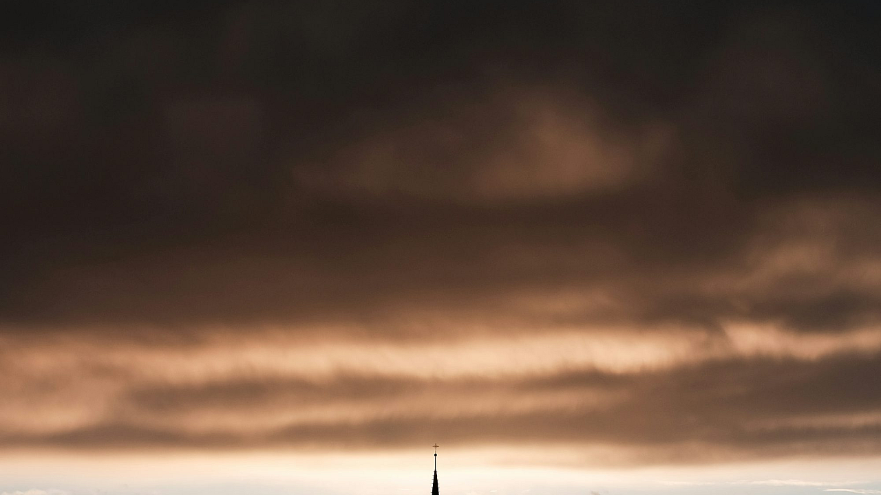 Wallpaper Silhouette of Tower Under Gray Clouds