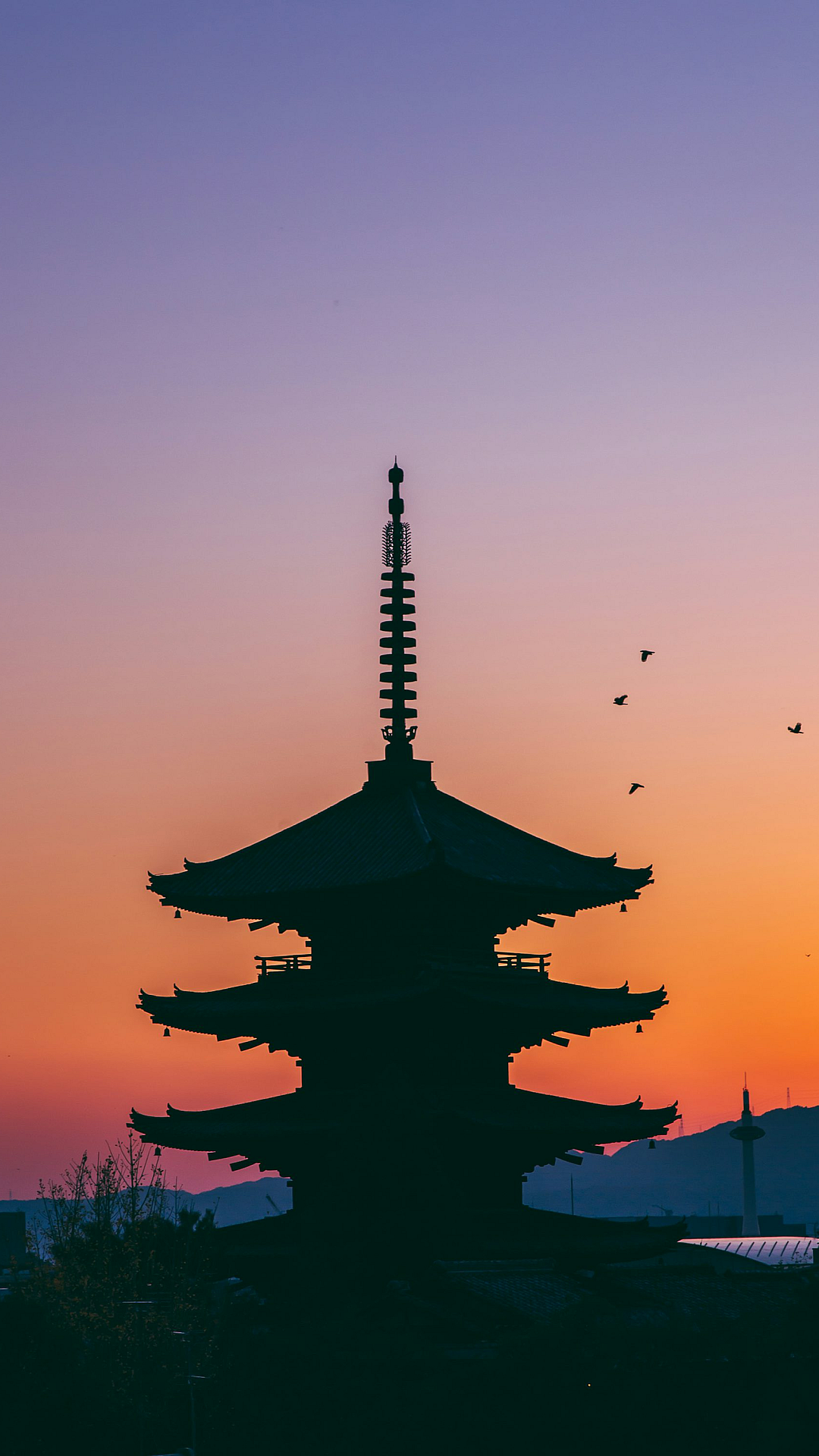 This stunning wallpaper features a silhouette of a majestic pagoda, set against a breathtaking backdrop. The intricate details of the temple’s architecture are beautifully captured in this evocative image. The silhouette lends itself to a sense of mystery and tranquility, perfect for those seeking a peaceful and serene atmosphere for their desktop or mobile device.
