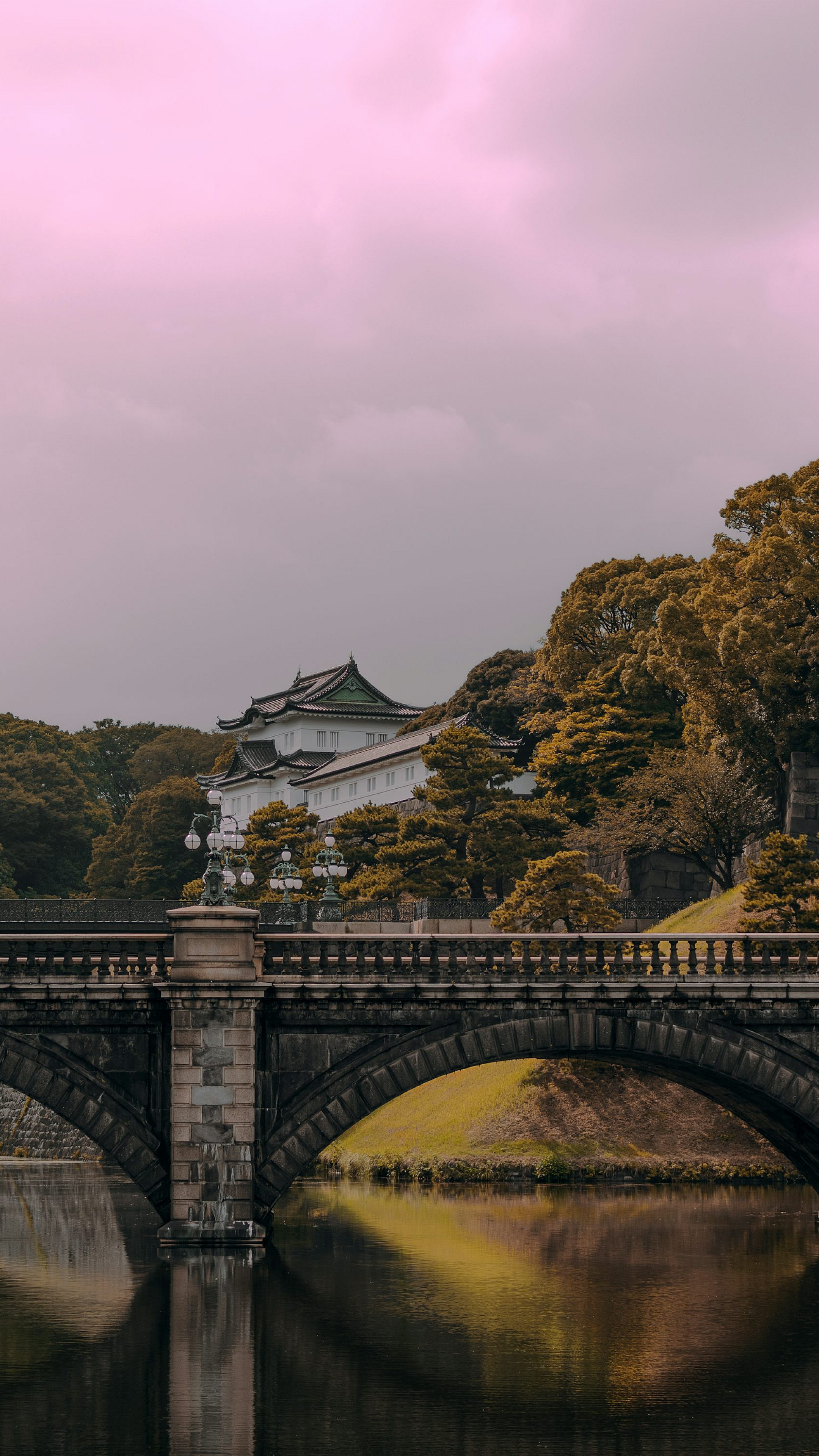 This stunning wallpaper features a dramatic image of a white and black concrete bridge gracefully arching over a flowing river. The contrasting colors of the bridge create a striking visual effect, making it perfect for those who appreciate modern architecture and minimalist design.
